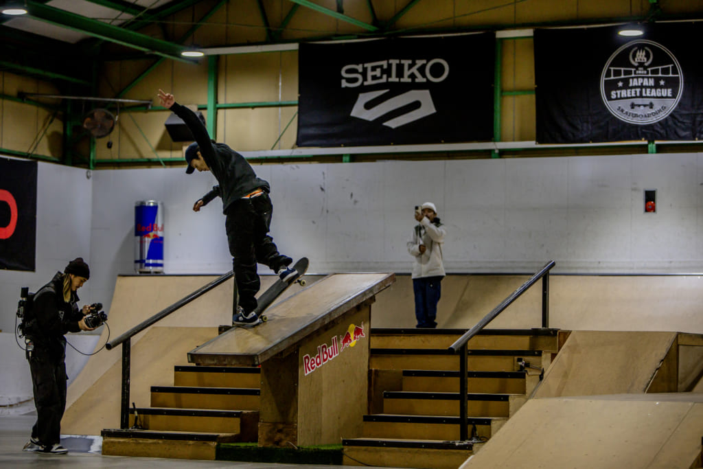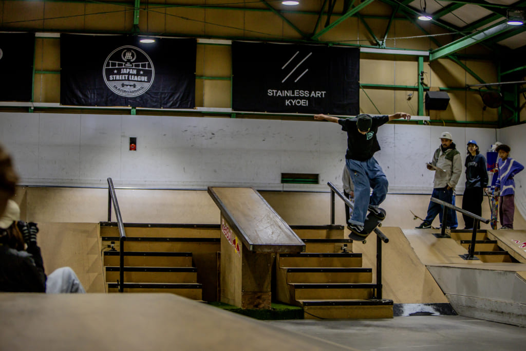 このJSLの出場者は完全招待制になっており、今回の参戦メンバーは10名。年間を通じ全4戦が国内のスケートパークで行われ、年間王者を決めるストリートツアーリーグである。採点方式はパリオリンピック予選と同じ採点方式を採用しており、ラン45秒を2本、ベストトリックを5本の合計7本で競い合うルールとなっている。点数はそれぞれ100点満点で、より得点の高いラン1本+ ベストトリック2本の3つの合計点数(300点満点)でランキング化され優勝者が決まる。