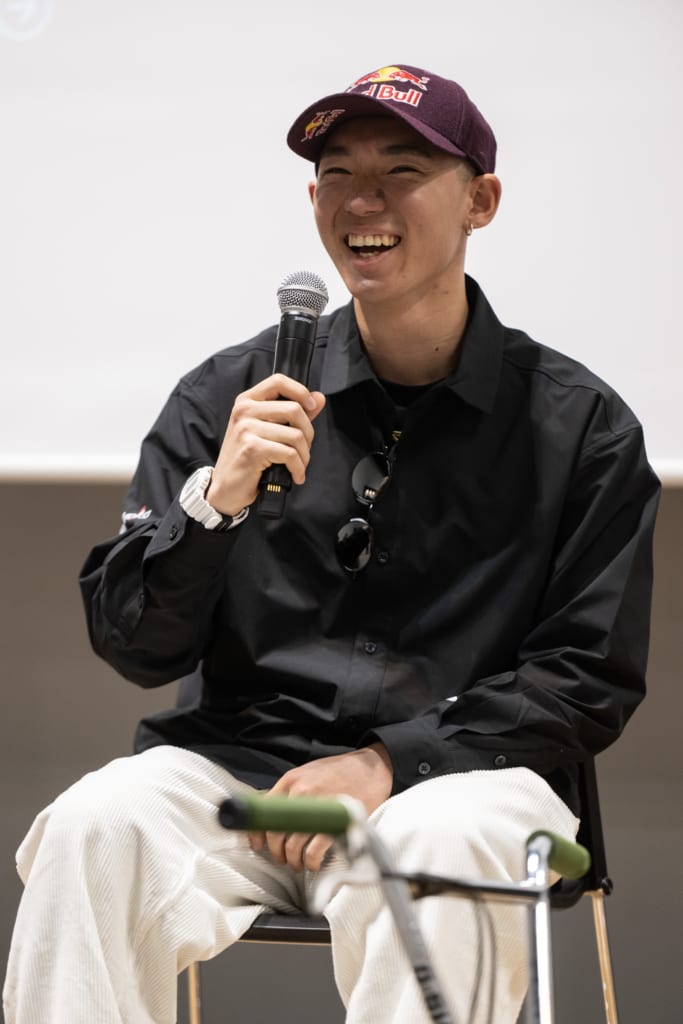 トークセッションでは大会出場予定選手として、女子選手からスケートボード競技パーク種目東京五輪金メダリストの四十住さくらと、同競技ストリート種目の東京五輪金メダリストの西矢椛。男子選手からは同競技ストリート種目の白井空良、同競技ヴァート種目の芝田モト、BMX競技パーク種目の中村輪夢、同競技フラットランド種目の佐々木元の計6名が登壇。